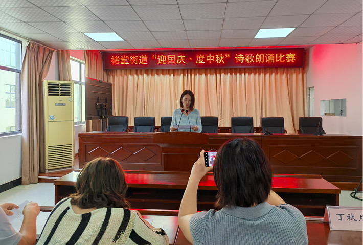 为热烈庆祝中华人民共和国成立76周年,弘扬爱国主义精神,传承中华优秀传统文化,营造热烈喜庆、文明和谐的节日氛围,9月30日下午褚堂街道办事处在机关会议室三楼举办“迎国庆,度中秋”诗歌朗诵比赛。活动现场,朗诵声与掌声不断,气氛热烈。《我的祖国》《我有一个美丽
