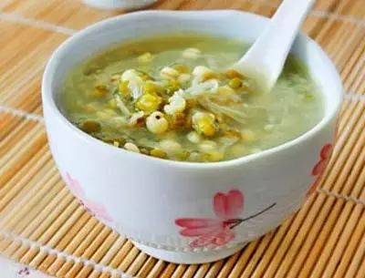 薏仁健脾化湿,绿豆清热解毒。薏仁较难煮熟,在煮之前需以温水浸泡2-3小时,让它充分吸收水分,绿豆最好也浸泡12小时,然后等份煮粥即可。