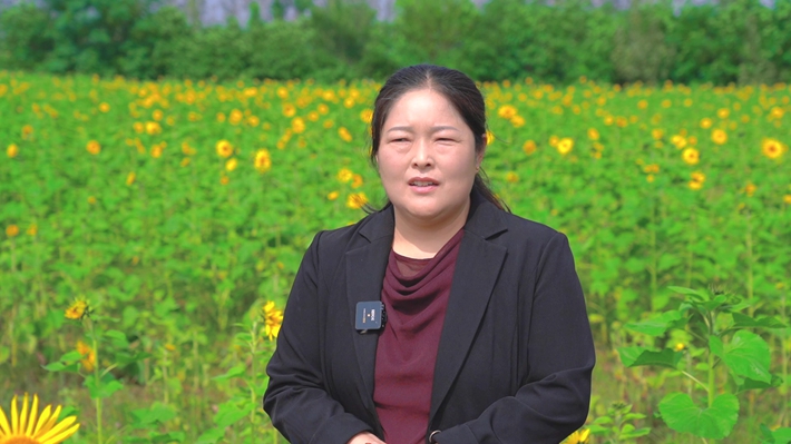 种植大户 杨焕:前段时间受干旱影响,我种的玉米到了后期已经绝收,之后就改种了油葵,大概种了五十亩。现在这些油葵正处在鲜花盛开的时期,如果有想赏花的朋友,欢迎来我的基地;要是需要鲜花,我也可以出售。再过二十多天,油葵就能丰收了,收了之后可以榨成葵花籽油,这茬油葵经济效益不错,销路也很畅通。特别感谢党委政府对我这个种植大户的帮助和支持,让我之前种玉米的经济损失得到了一定补偿。