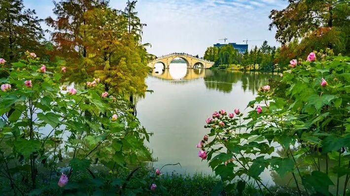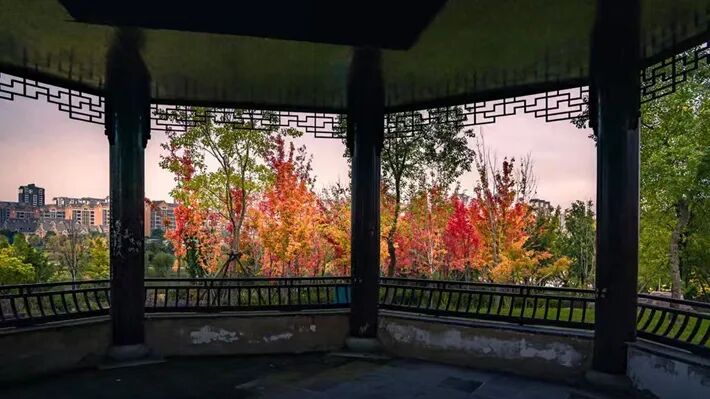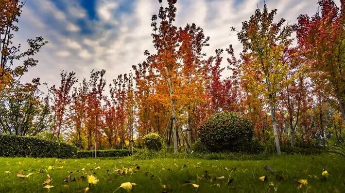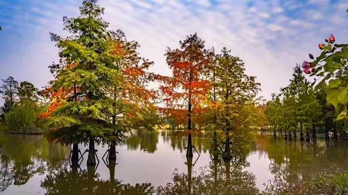 2025年10月23日,河南省驻马店市遂平县玉湖公园,天高云淡,草木繁盛,彩叶层层叠叠,将公园的秋意晕染得浓烈而雅致,每一处角落都透着独特的秋日韵味,仿佛让时光都在此刻慢了下来。图为秋日玉湖。 赵建明 摄