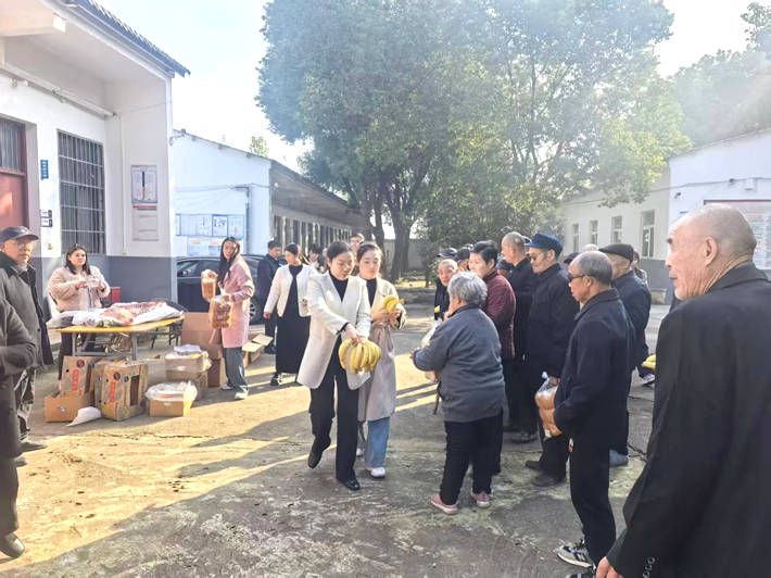 活动现场,县妇联一行与老人们亲切交谈,详细询问他们的身体状况、饮食起居和生活需求,倾听老人们的心声,叮嘱他们注意添衣保暖和日常安全。随后,工作人员为老人们送上了由河南省卡兰体育用品有限公司总经理李俊生赞助的新鲜的猪肉、松软的面包、香甜的香蕉等慰问品,每一份礼物都承载着对老人们的诚挚祝福。