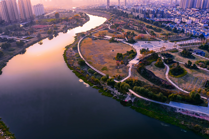 2025年9月20日黄昏时分,河南省驻马店市遂平县玉带河公园,霞光倒映在水面,波光粼粼间满是诗意,桂花满园飘香,草木换上斑斓的彩衣,勾勒出一幅色彩缤纷的秋日图景。记者:赵建明