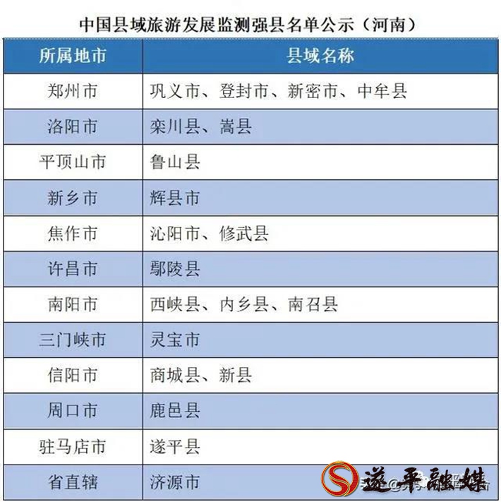 遂平县被纳入中国县域旅游发展监测强县名单