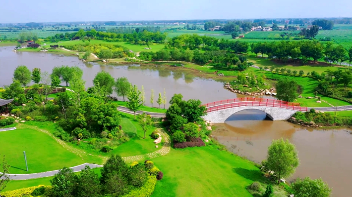 雨后初晴,遂平县汝河岸边的沙滩和植物园里,居民有的河边漫步,有的带着孩子玩耍,惬意享受着生活。