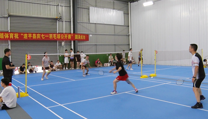 7月20日至21日,全市羽毛球巡回赛遂平县公开赛在宸域(遂平)实业有限公司举行。来自社会各界的22支球队、数百名羽毛球爱好者参加比赛。本次赛事活动由遂平县卫健体委主办,市羽毛球比赛组委会、昌盛文化传播有限公司、新闻广告有限公司、鑫博广告有限公司和遂平羽众不同