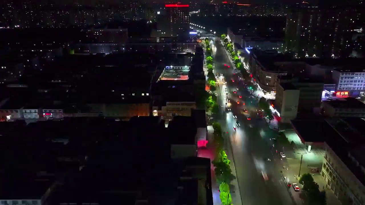 河南 2024年5月22日夜晚,通过无人机的延时摄影功能,记者拍摄了遂平县城的夜色,只见道路上的车辆、五彩斑斓的霓虹灯,把城市装扮得流光溢彩,夜景显得更加璀璨。记者:刘利