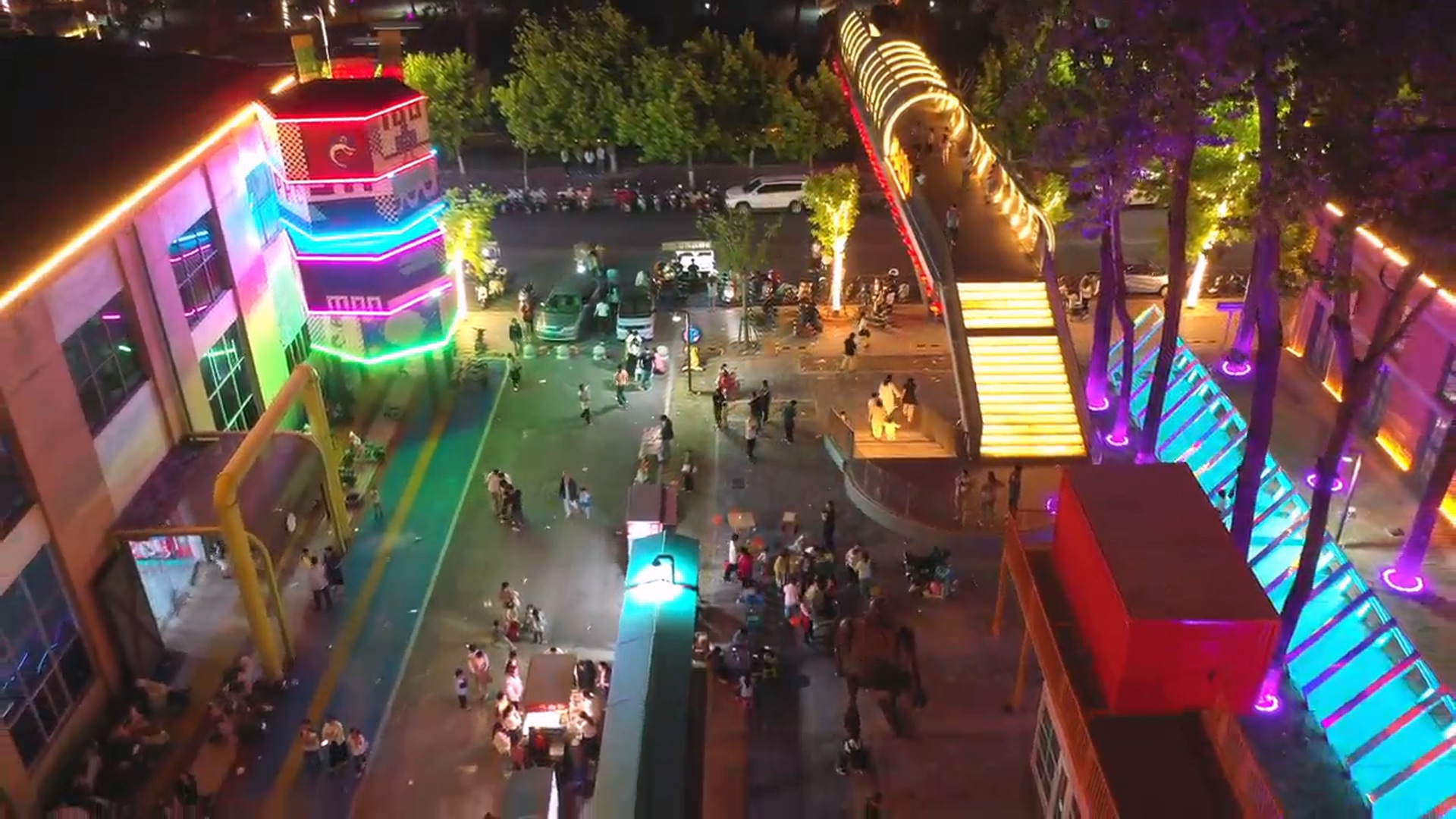 2024年5月13日,夜幕降临,遂平县1955工业文化创意产业园披上霓虹外衣,灯光璀璨,热闹非凡,夜色迷人。