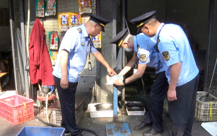 遂平县市场监管局组织执法人员对各商户电子计价秤进行突击检查
