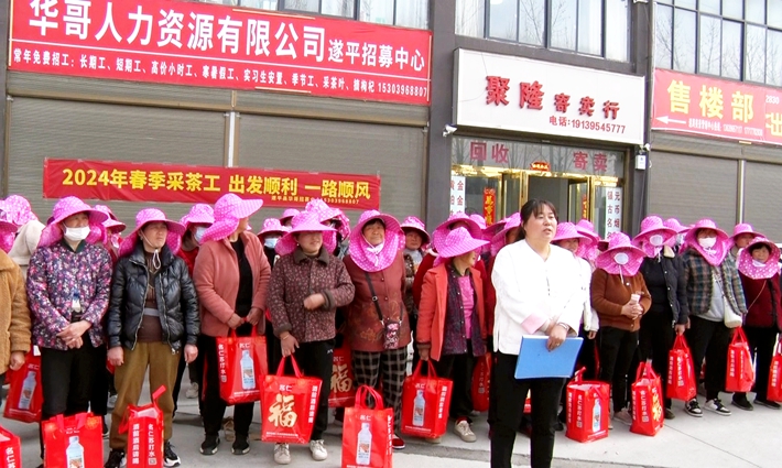 早春三月,春茶吐翠,正是一年采茶好时节。3月26日下午,遂平县华哥人力资源公司,组织2024年春季采茶务工欢送活动。采茶工友们提着爱心礼包,前往安徽省广德县采茶务工。据了解,我县本次赴安徽省采茶务工人员共计60余人,绝大多数为大龄女工,平均年龄在50周岁。本次采
