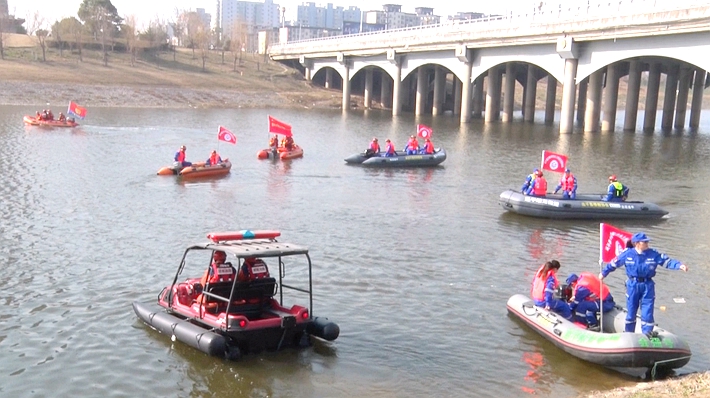 为切实提高水上搜救应急能力,扎实做好水上应急工作,有效应对、快速高效处置突发事件的应急指挥和联动处置能力,3月10日上午,县文明办组织开展"学雷锋・文明实践我行动"水上救援演练活动。 此次演练分为:冲锋舟挂机、启动、穿越障碍、水上抛绳、岸上抛绳、水上机