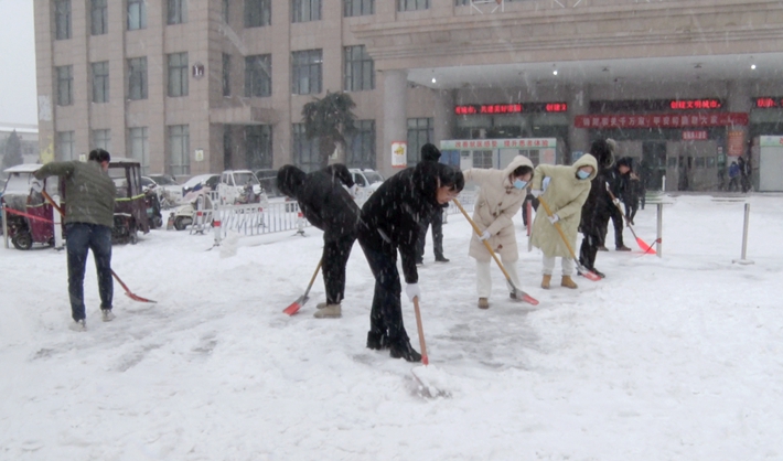 扫雪除冰,“医”路畅通——县人民医院干部职工积极开展扫雪工作