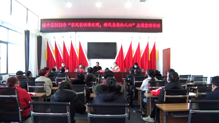 为进一步加强家庭家教家风建设,弘扬中华优秀传统文化,推进移风易俗深入人心,12月2日上午,我县开展首期“家风家训传文明 移风易俗沁人心”主题宣传话动。 宣讲会上,遂平县志愿联合会志愿宣讲师用通俗易懂的语言对“家风家训”的内涵以及如何传承“良好家训”进行了细