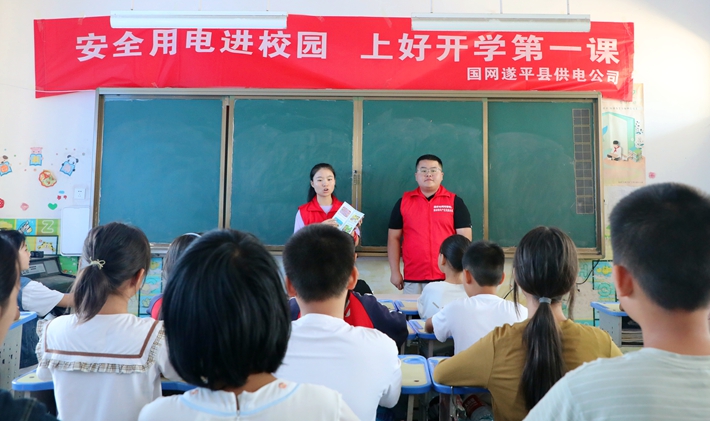 “同学们,刚洗完的湿手千万不要触碰各类电器,一定要将手上的水擦干后再接触插座和开关。” 9月5日,国网遂平县供电公司焦裕禄共产党员服务队走进遂平县褚堂乡中心小学开展“安全用电进校园 上好开学第一课”主题活动,为该校师生送上了一份特别的“开学礼”。课堂上,该
