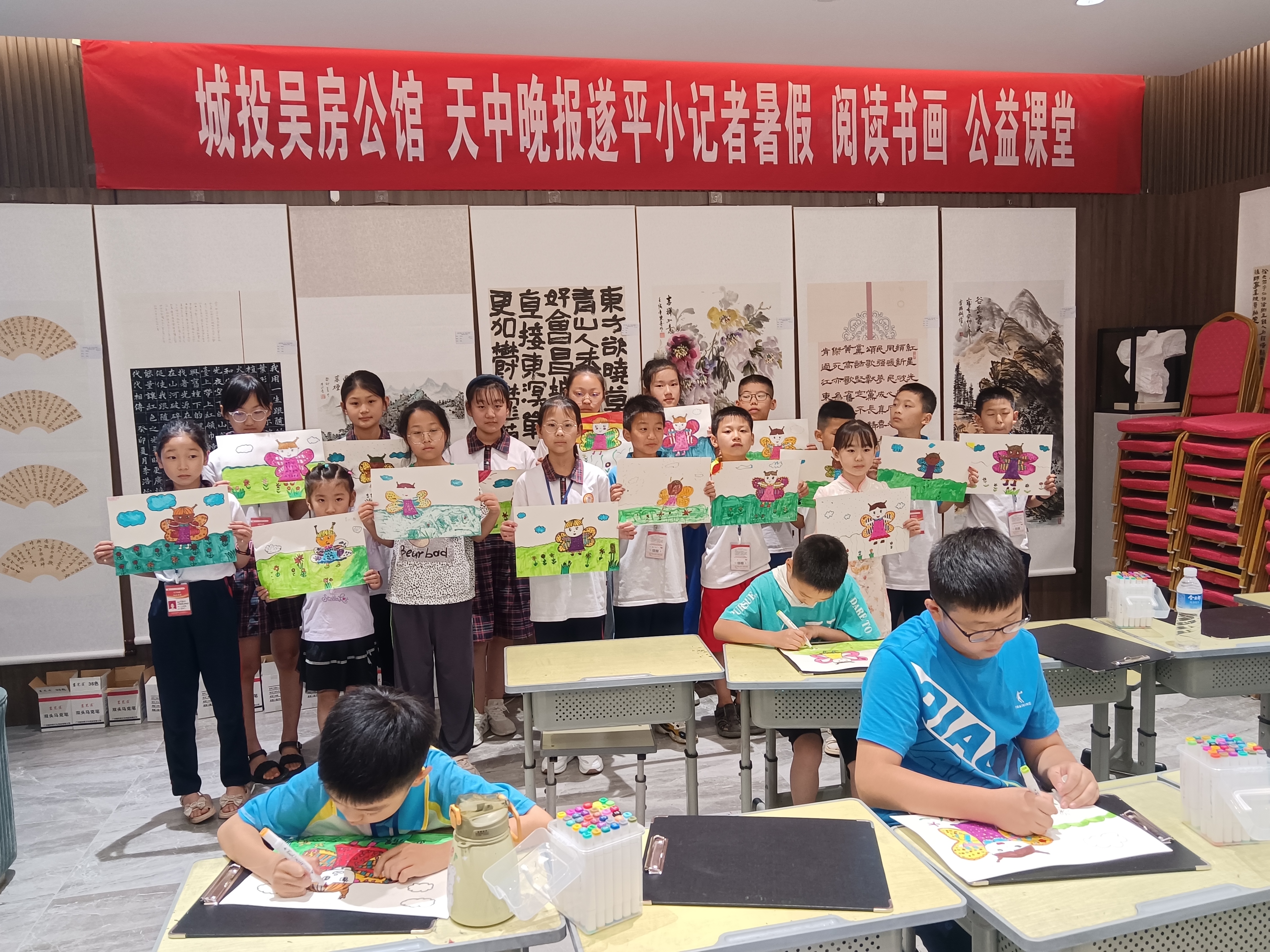 遂平:公益书画课堂 丰富小记者暑假生活