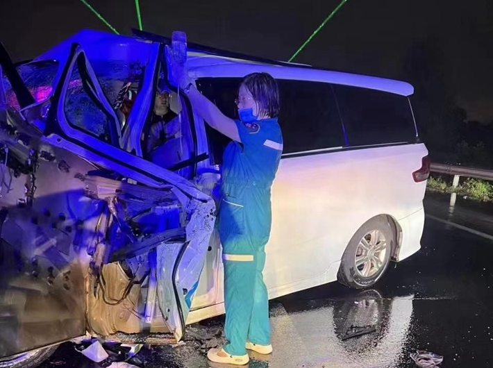 深夜高速突发车祸 急诊医生雨中举吊瓶一小时