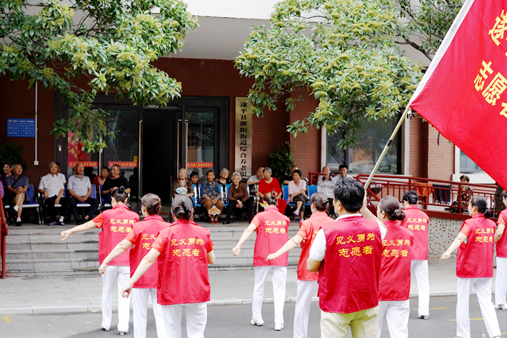7月29日下午4点,遂平县见义勇为志愿者服务队二队联合吴房义工,冒高温酷暑,带着精心准备的文艺节目来到遂平县1955工业园区养老院,为生活在这里的老人精彩文艺节目,受到老人们的欢迎。 养老院里的老人们早已在台下就坐,等候着志愿者们的精彩演出。随着《母亲是