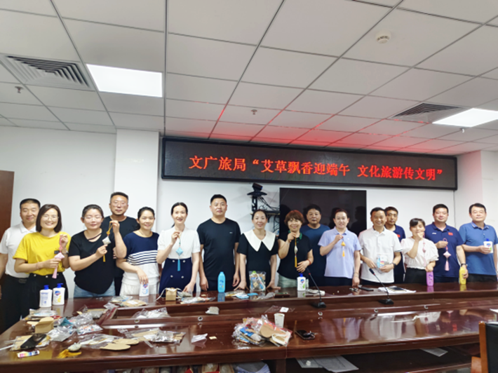 6月21日,遂平县文化广电旅游局组织广大干部职工开展“艾草飘香迎端午 文化旅游传文明”活动。活动前,局长赵东升讲述了端午节的来历和习俗、香囊的寓意功用和制作材料方法,手把手教大家制作香囊。活动现场,干部职工聚起,利用花布、艾草等材料制作出一个个精美漂亮的香