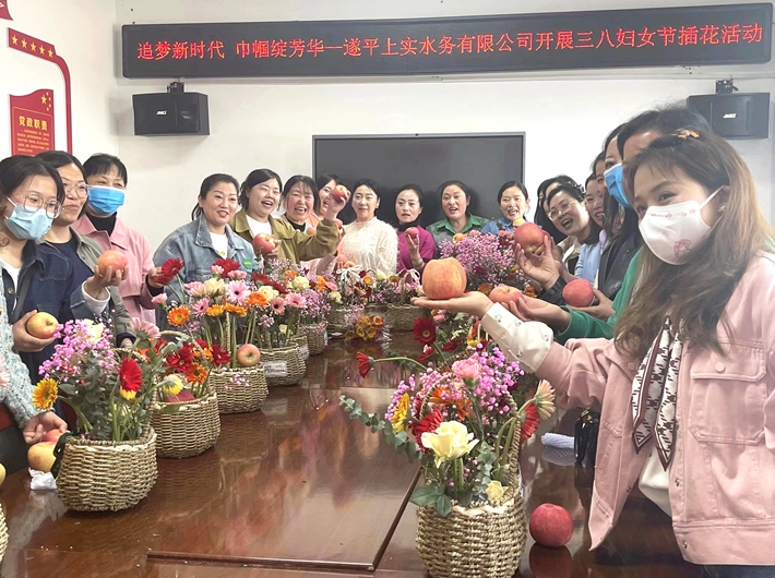 遂平上实水务公司开展“追梦新时代 巾帼绽芳华”主题插花活动