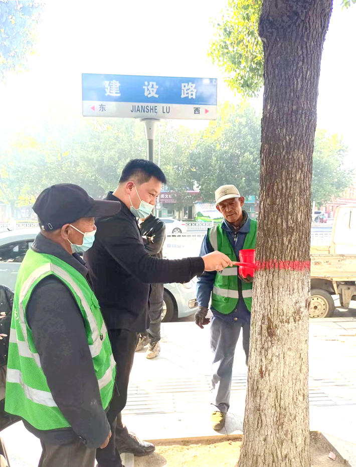 树木涂白靓风景 绿化养护固成果