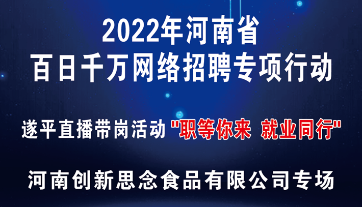 2022年遂平“职等你来 就业同行”直播带岗活动—河南创新思念食品有限公司专场来了