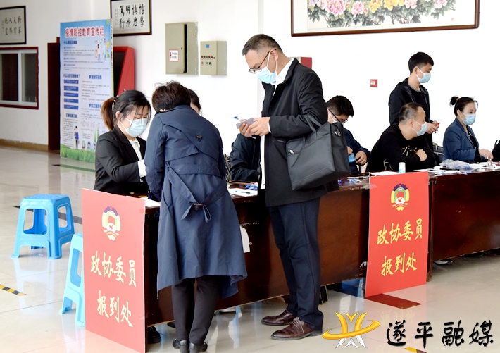 4月18日下午,出席县政协十届一次会议的委员陆续向大会报到。