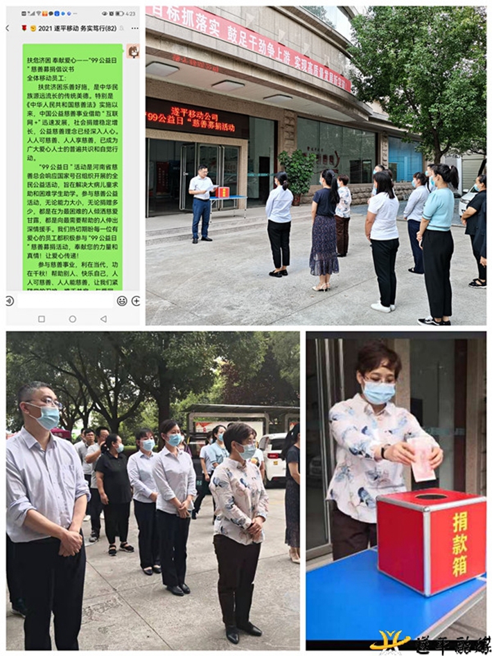 根据遂平县慈善总会关于开展“99公益日”活动工作安排,中国移动遂平分公司闻令而行,积极开展慈善募捐活动。为充分调动广大员工参与慈善爱心募捐活动的积极性,遂平分公司针对全体员工发出了捐款倡议书,倡导全体员工捐出一份爱心,为最困难的人倾洒慈爱甘露,向最