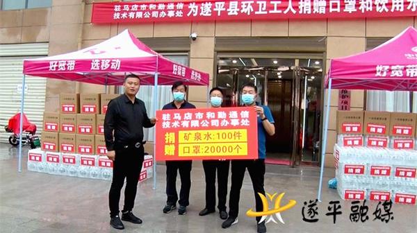 驻马店和勤通信有限公司为我县环卫工人捐赠防疫物资