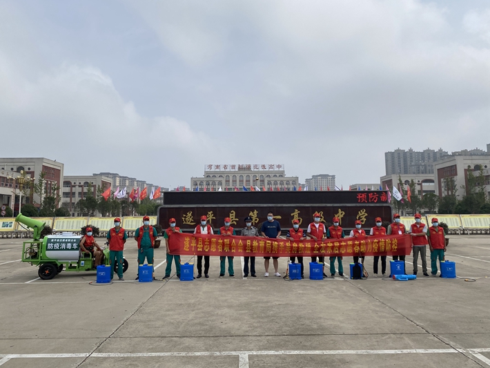 遂平:“志愿红”学校义务消杀 筑牢疫情防控“安全墙”