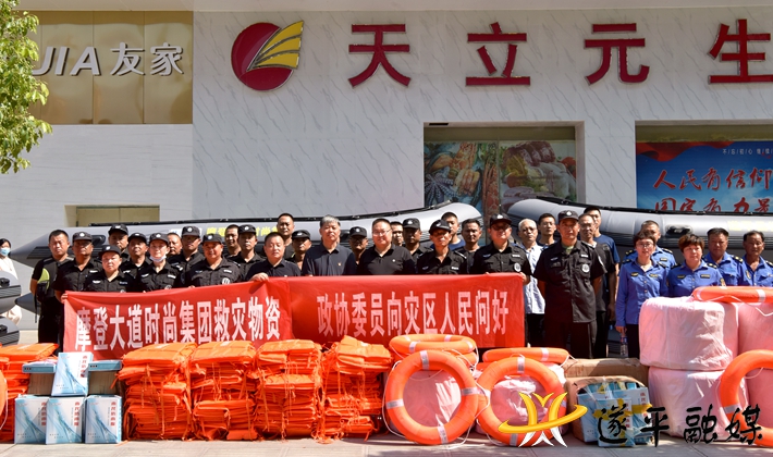 摩登大道时尚集团股份有限公司携手遂平佛教协会抗洪救灾水上救援设备和物资捐赠仪式在城南新区举行