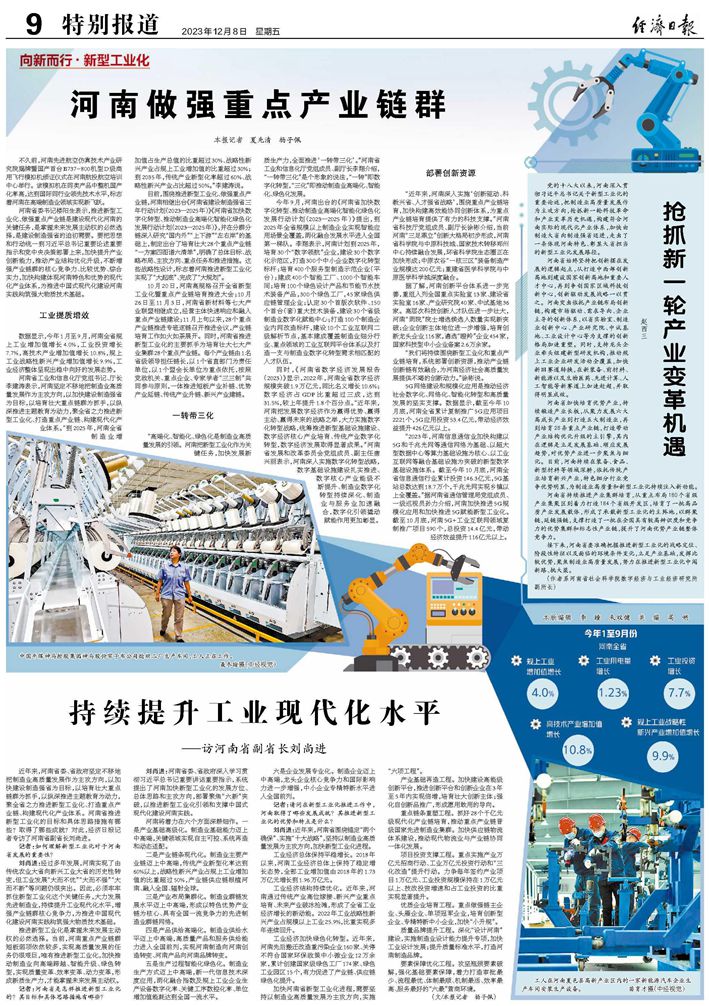 培育发展七个产业集群、二十八条重点产业链河南持续延链补链强链(深入推进新型工业化)