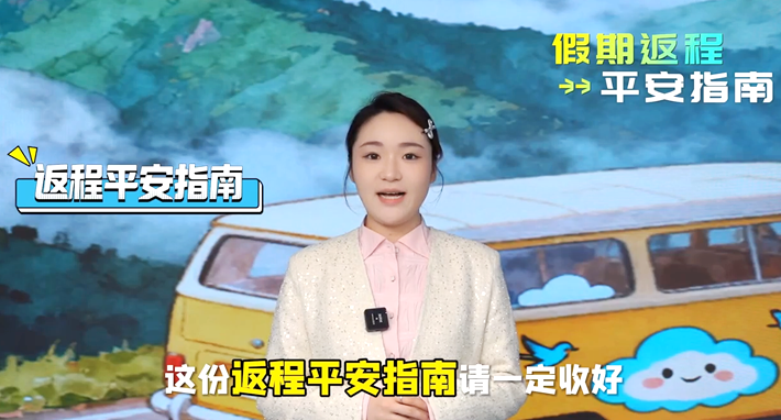返程平安指南,助你顺利回归工作生活! 假期结束,返程路上请收好这份平安指南!行前检查物品车况,途中看管行李、拒绝疲劳驾驶,抵达后通风安检、调整状态。多一份谨慎,多一份耐心,愿每位旅人平安抵达,活力迎接新程! 出镜:张昱泽 摄像剪辑:石磊