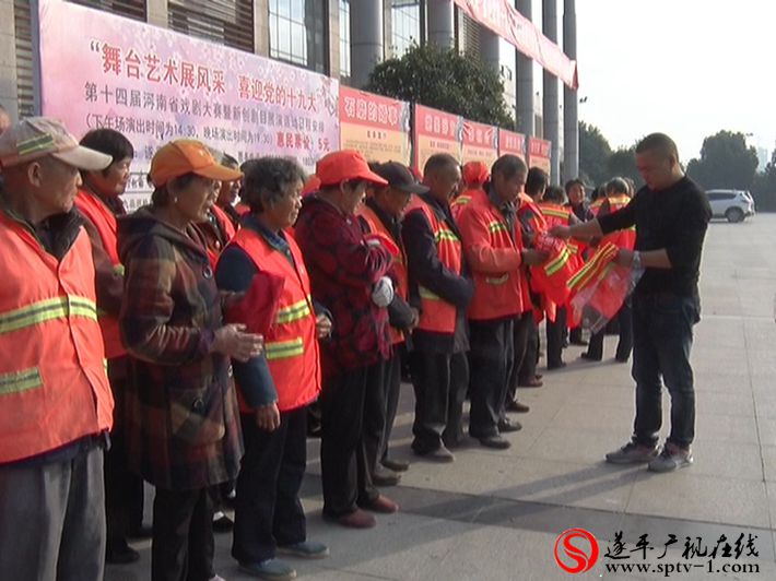 会前,我县部分爱心企业还为环卫工人送去了马甲和雨衣等节日礼物。