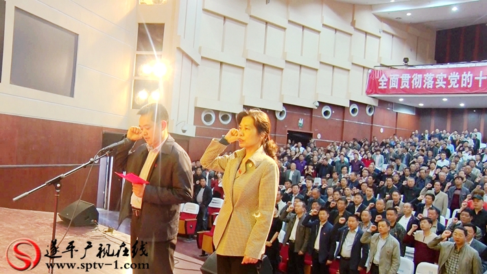 县委书记何冬、县委副书记尹永彪带领与会人员一起重温了入党誓词。