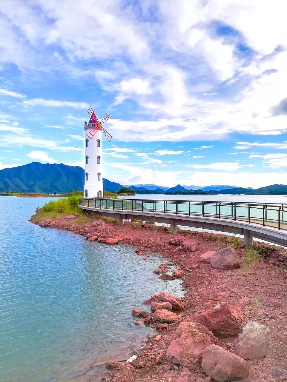 灯塔也是千岛湖畔一道美丽的风景。长长的走道通向唯美的灯塔,两边都是碧波,如此美景吸引了不少新婚夫妻在这拍摄婚纱照。