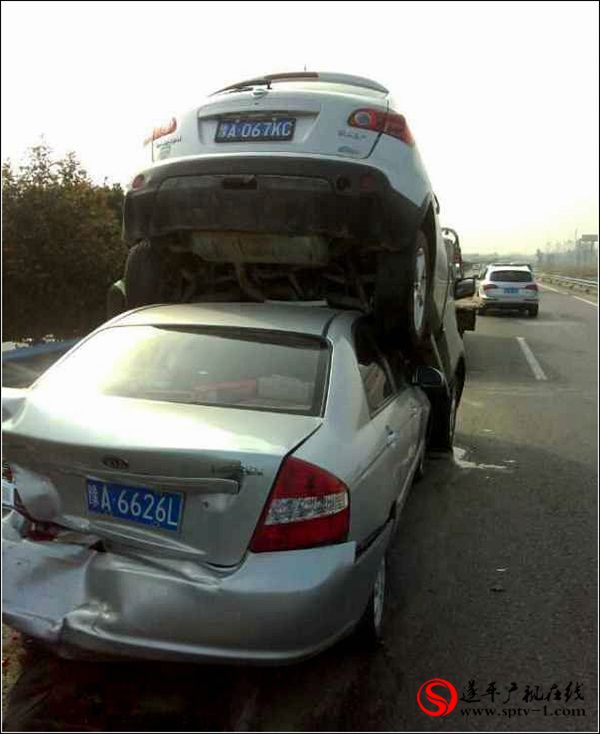 网友文博:10月2日上午,在京港澳高速遂平境内,发生一起车辆追尾事故,后面的车辆直接钻到了前车的下面,看着很严重,司机及车乘人员并无大碍。