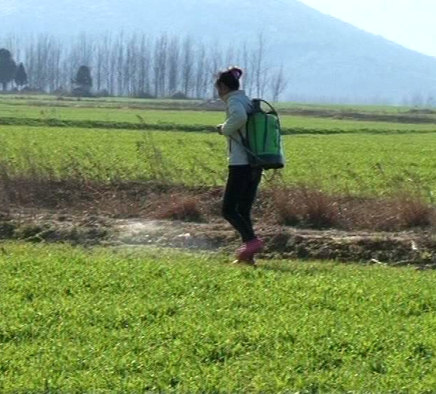 遂平县嵖岈山镇杨店村村民王美花告诉我们:现在这两天比较暖和,地里有草,想着打打药,燕子麦啊,还有那个剌菜呀,这草比较稠,比较多,凑准这个机会打打,明年好迎接丰收。