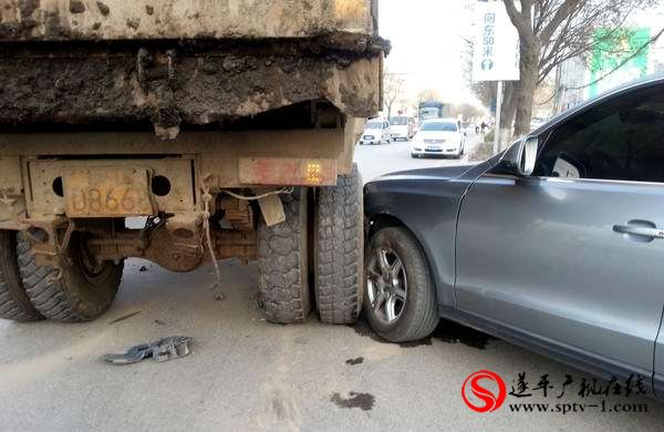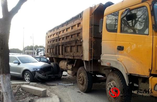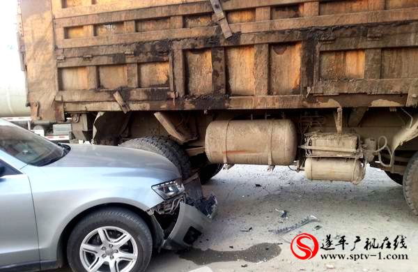 今天(12月22日)下午4时许,在遂平县国槐路与西关大道路口,发生一起离奇车祸,一辆奥迪Q5在右方强行超车时,被一辆正常右转行驶的大货车挂着前脸,结果奥迪车前脸严重受损。 据目击这次事故的一名路人介绍:两辆车都是右转,但是奥迪车可能是依仗自己的车好,从大车的右后方强行超车,这可是驾驶员的大忌啊!不出事才怪哩!