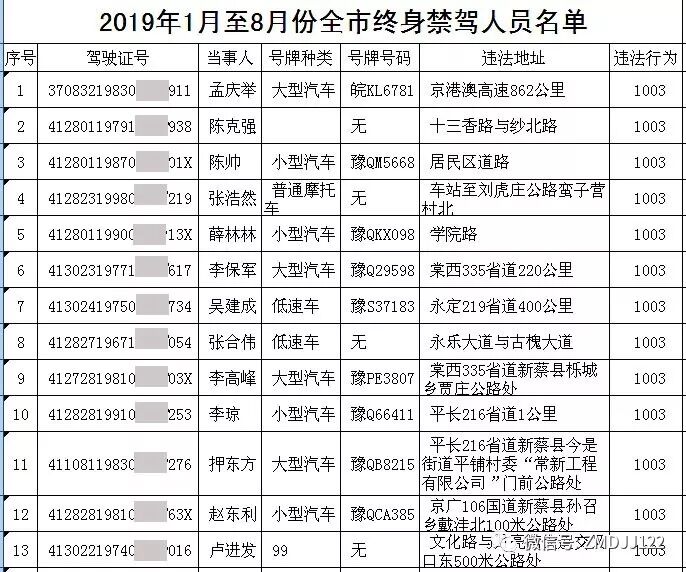 2019年1月1日至8月23日,全市有58名机动车驾驶人因严重交通违法被终生禁驾。其中39人因造成交通事故后逃逸构成犯罪被终生禁驾,19人因饮酒或醉酒后驾驶机动车发生重大交通事故构成犯罪被终生禁驾。