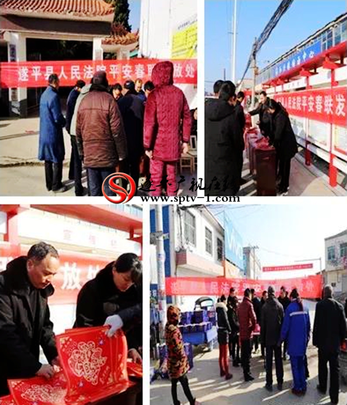 1月19日,遂平法院进一步开展“政法干警走基层、平安春联送万家”活动,由院领导带队,前往和兴、沈寨等地,设置平安春联发放处,向过往群众免费发放春联。一幅幅喜庆的春联和福字,为广大群众送去一份温暖的同时,也进一步密切了党群、干群关系,更进一步为促进社会的和谐,打下了良好的群众基础。