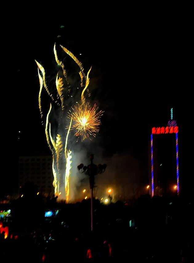 7点钟刚过,奥林匹克广场上空便呈现出一幕奇异的景象:成千上万来到广场,开始燃放孔明灯,放飞愿望。不一会,成群结对的孔明灯就扶摇直上,飞上了高空,满天的灯笼犹如了天上的繁星,在夜空中闪烁,场面颇是壮观。十五之夜 ,月亮也格外圆,皓月当空,与四周此起彼伏的烟花交相辉映,令人仿佛置身于仙境,如梦如幻。朵朵艳丽的焰火美景与人们的欢声笑语交织成曲,描绘出一幅幅流光溢彩、如梦如幻的美妙画面。