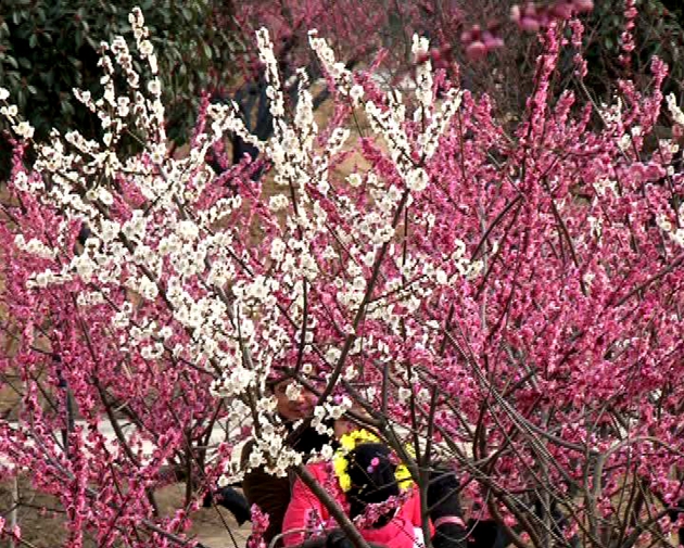 近日,记者来到嵖岈山温泉小镇的梅园看到,梅园里早已春意浓浓,红色的、白色的梅花在枝头肆意绽放,洋溢着花在枝头笑,人在丛中俏的喜气。烘托出了暖暖的春意。游客们三五成群,呼朋引伴,赏梅踏青,有的则扶老携幼,全家出动,大家尽情徜徉花的海洋,或摄影留念,或静静寻访梅花的风采。