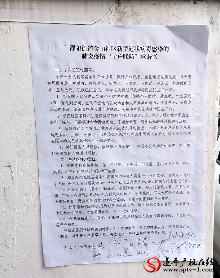 二是夯实责任建网格。坚持层层传导压力、逐级压实责任,全力守好疫情防控第一道防线。街道办事处作为一级网格,第一时间成立由街道党工委书记任指挥长的疫情防控指挥部,下设排查、管控、宣传、督导四个专业组,定期召开联席会议,研判形势,解决问题,明确重点;各社区作为二级网格,分别由一名班子成员分包,支部书记任网格长,向街道指挥部递交防控承诺书;三级网格由街道、社区干部任网格长,党小组长、村民组长、县直单位工作人员、党群志愿者为网格员;四级网格由觉悟高、能力强、热心公益的楼栋长、老党员、退休干部职工等担任十户长,签订“十户联防”承诺书。四级网格逐级明确工作职责,签订防控责任承诺书,压实防控责任,形成了可监督、可追溯的防控责任体系。