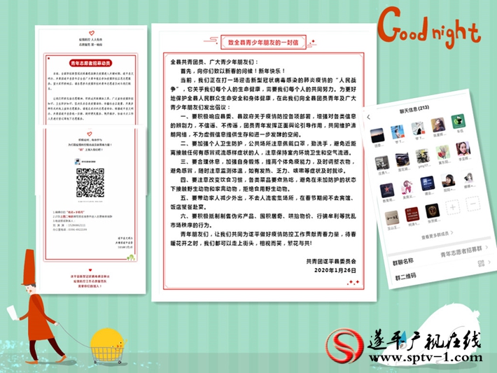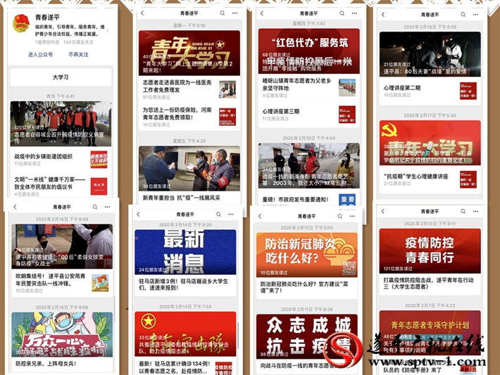 充分发挥青年人接受信息快、分析能力强的优势,及时通过团县委微信公众号“青春遂平”推送正面权威信息,做好防治知识宣传和释疑解惑等工作,带头学习科学防疫知识,抵制陈规陋习,不传谣、不信谣,以青春之声弘扬青春正能量,累计推送各类权威信息40余条,宣传身边典型20余个。同时,在全县18个乡镇(街道),要求团组织负责人联系至少一名本地返乡大学生,在本地微信群里第一时间转发官方发布的疫情信息和疫情防控有关知识,用正确的信息来消除群众的恐慌心理。在城区出动一辆宣传车不间断对疫情防控知识进行宣传,持续加大疫情防控知识宣传力度,帮助群众克服恐惧心理,科学应对疫情。为帮助全县青少年在家顺利的度过疫情,团县委与县教育局联合录制学生疫情防控心理健康讲座5期,在各中小学校发布了心理咨询联系热线,定期转发团省委制作的“团团小广播”,帮助学子们缓解抗疫焦虑,平稳度过开课不开学的心理压力期。