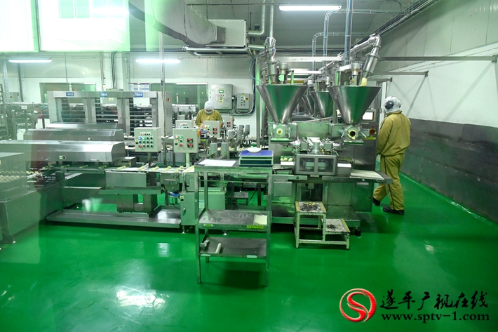 公司目前开动的是凤梨酥生产线,从包陷成型、隧道式烘烤、成品装箱只需20多分钟,一条线每天可生产19吨,大概10万包凤梨酥。