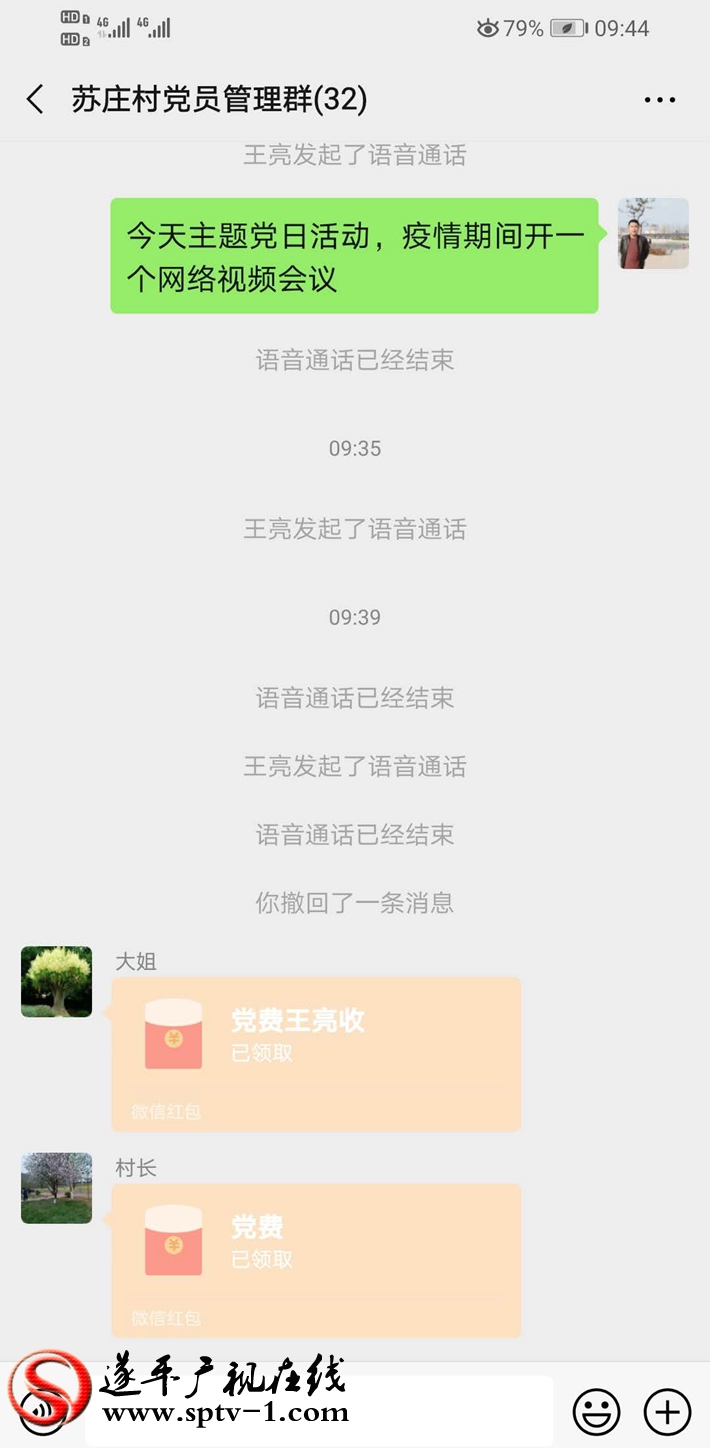 “线上”面对面,做好防疫阻击战。各村党支部以网络为媒介,开展“防控新型冠状病毒,发挥党员先锋模范作用”为主题的线上面对面主题党日活动,并通过学习强国共同学习了、《习近平总书记部署坚决打赢疫情防控阻击战》、《关于加强党的领导、为打赢疫情防控阻击战提供坚强政治保证的通知》等文件精神,并以党小组为单位用微信群视频等方式进行了学习交流,会后还通过微信红包转账等方式收缴了本月党费。通过视频会议的形式,既可以及时学习上级精神和防控知识,又能够有效减少人员聚集,对疫情防控有着十分重要的作用。