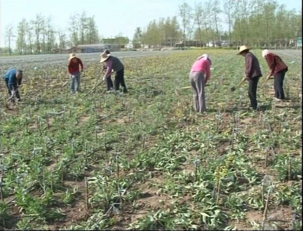 由于苗木栽植及管理是一个细致活,需要的人力比较多,所以许多当地的群众又来到苗木基地打工。在田间记者看到处处都是工人忙碌的身影,他们有的除草、有的磨芽、有的栽植,现场一派忙碌的身影。