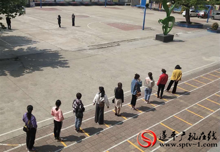 模拟演练分别围绕学生入校、测温入班、应急处理、课间入厕、分段错时就餐、有序入寝、走读生离校等环节进行了演练。活动中,学生按照学校规划的路线自觉在校外间隔1米的地标处有序排队入校,通过消毒,测量体温,体温正常后依次入校。在入校环节演练中,排查出一名发热“学生”,由隔离引导员将其引导到至隔离室。待防控员再次对通道消毒后,学生继续依次入校。其他环节也都由专人具体负责,确保学生安全有序不聚集,保障复学后师生的生命安全和身体健康。
