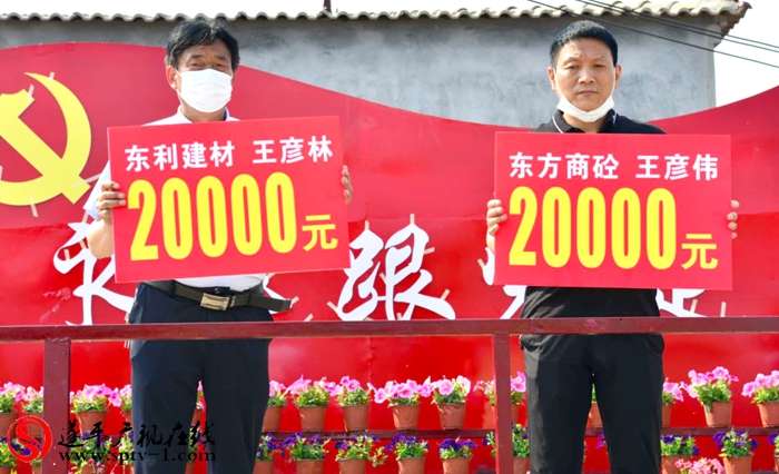 镇党委书记张耀林率先带头捐赠3000元,镇长戴沅航捐赠3000元,镇人大主席王海军捐赠2000元,镇武装部长赵博捐赠2000元,镇党委组宣委员杜收捐赠2000元,随后捐赠的人依次走上捐赠台,东方商砼负责人王彦伟捐款2万元、东利建材负责人王彦林捐款2万元、丰创建材负责人王俊捐款2万元、王三贵捐款2万元、王劲松捐款1万元、王长松捐款1万元、王永军捐款1万元、六组王彦伟捐款1万元......