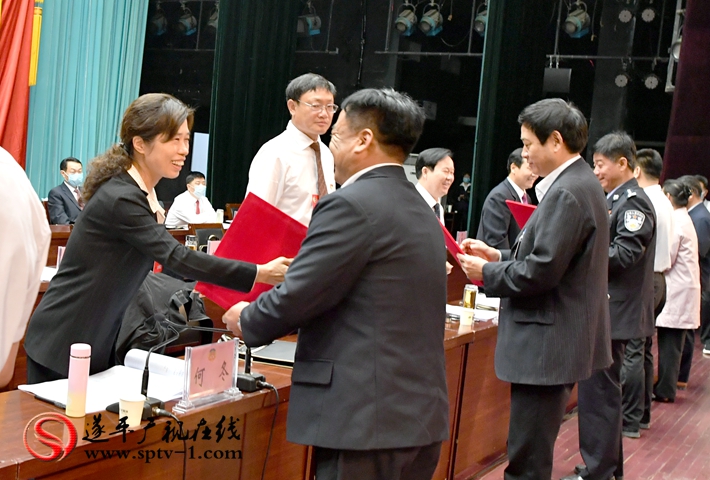 县政协副主席张阳宣读了《政协遂平县委员会关于表彰九届三次会议以来优秀政协委员、疫情防控先进委员、优秀提案和提案办理先进单位的决定》。
