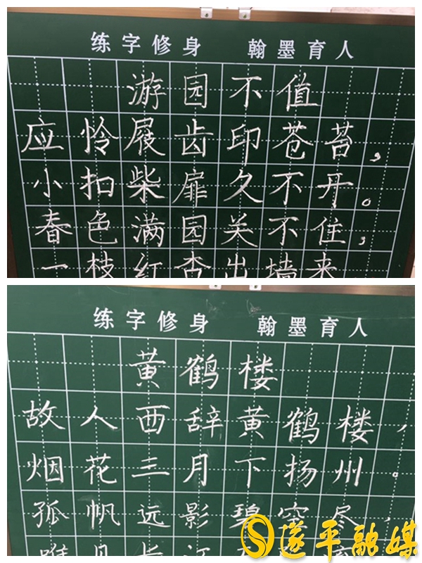 在本学期复学的首次工作会上,校长陈贺勤校长就反复强调:写好粉笔字是每一个教师必须具备的基本功之一,既展现了教师们的个人书写风采,同时对学生审美能力和书写能力的提高起着潜移默化的影响,并要求教师课下勤加练习。同时规定:每周四展示一周内的训练成果。